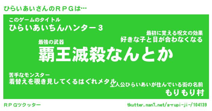 | 男性向けラノベタイトル風あだ名 | 『ヒライアイアートオンライン』 |