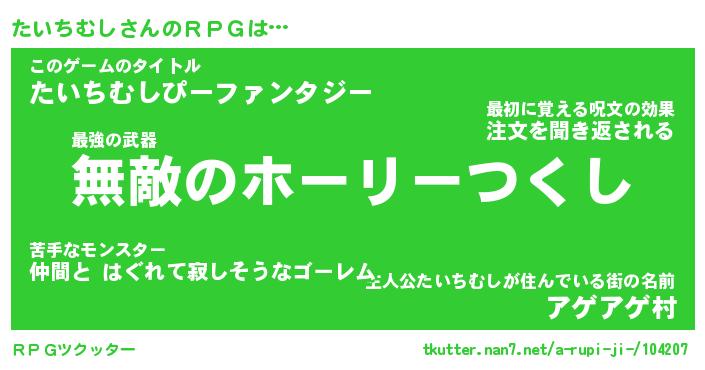 | 男性向けラノベタイトル風あだ名 | 『タイチムシアートオンライン』 |