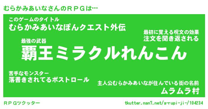 | 伝説のあだ名 | 『封印されし竜騎士むらかみあいな』 |