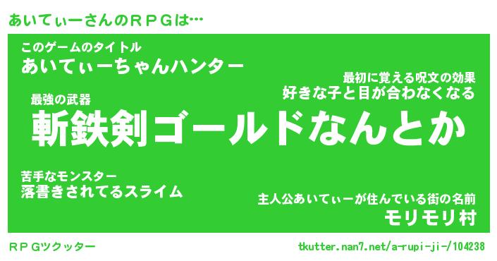 | 胡散臭い通販商品みたいなあだ名 | 『必ず成功する水晶球…その名も「あいてぃー」』 |
