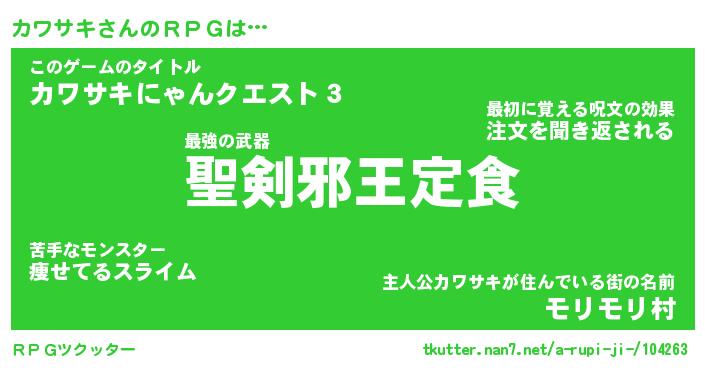 | ファンタジー風あだ名 | 『カワフェル』『エターナルカワサキー』 |