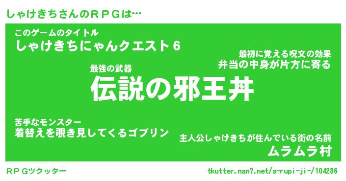 | ファンタジー風あだ名 | 『シャフェル』『エターナルシャケキチー』 |