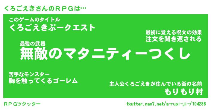 | 男性向けラノベタイトル風あだ名 | 『クロゴエキアートオンライン』 |