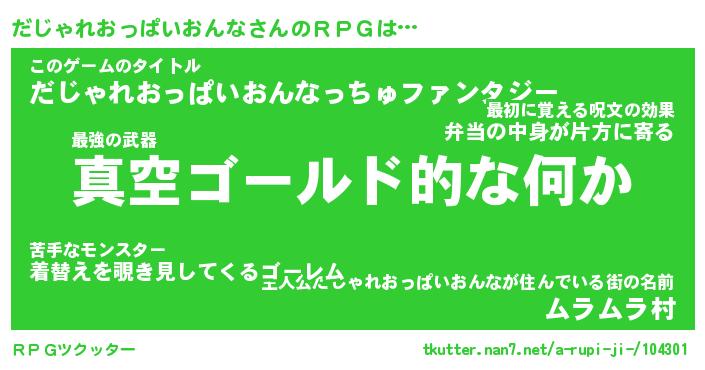 | 男性向けラノベタイトル風あだ名 | 『ダジャレオッパイオンナアートオンライン』 |