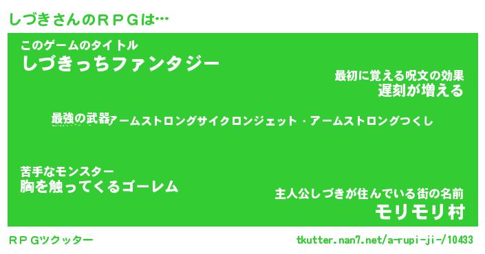 | ファンタジー風あだ名 | 『シヅフェル』『エターナルシヅキー』 |