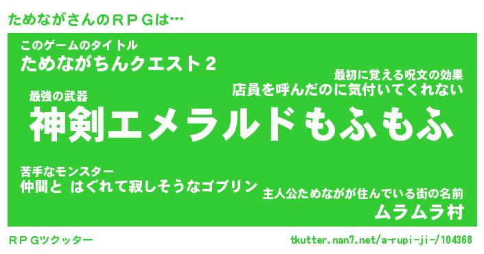 | 男性向けラノベタイトル風あだ名 | 『ためながの憂鬱』 |