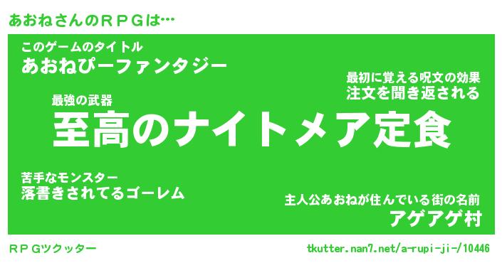 | 男性向けラノベタイトル風あだ名 | 『アオネアートオンライン』 |