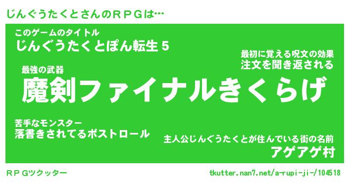 | 意味不明あだ名 | 『ペロリンじんぐうたくと』 |