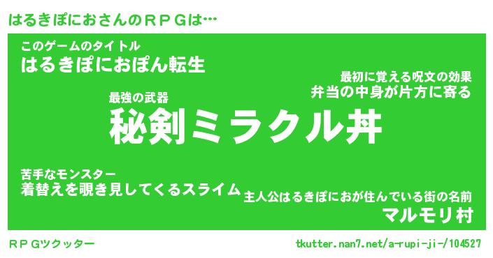 | 女子向けラノベタイトル風あだ名 | 『はるきぽにお姫と円卓の騎士』 |