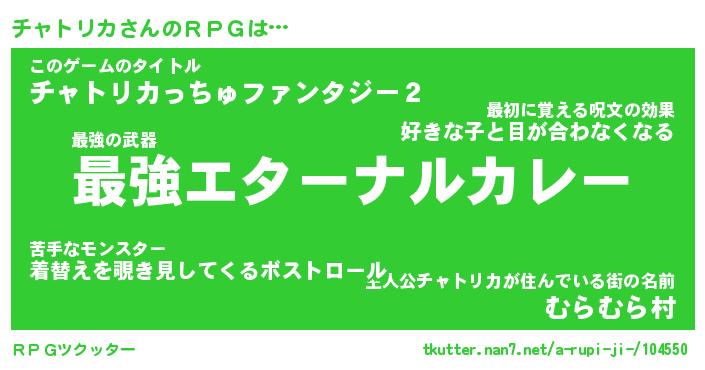 | ツイッター | チャトリカさんのツイッターID『katatsumuri_idle』 |