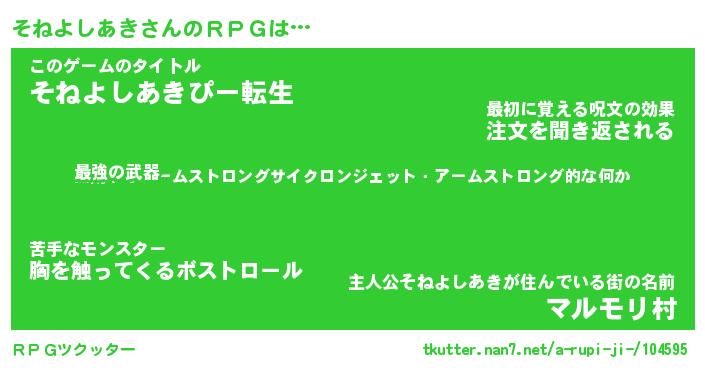 | 男性向けラノベタイトル風あだ名 | 『そねよしあきの憂鬱』 |
