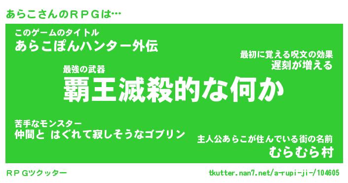 | 男性向けラノベタイトル風あだ名 | 『アラコアートオンライン』 |