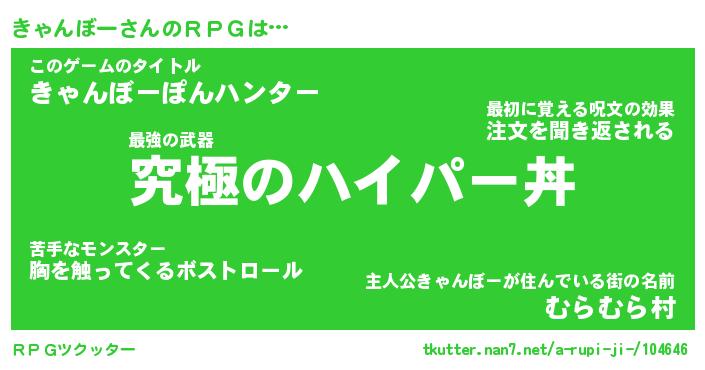 | 男性向けラノベタイトル風あだ名 | 『きゃんぼーの憂鬱』 |