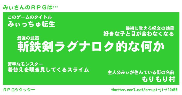 | 胡散臭い通販商品みたいなあだ名 | 『必ず成功するブレスレット…その名も「みぃ」』 |