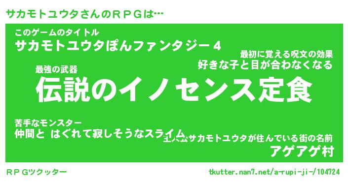 | 男性向けラノベタイトル風あだ名 | 『サカモトユウタの憂鬱』 |