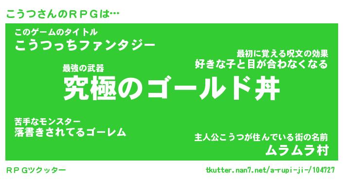 | 男性向けラノベタイトル風あだ名 | 『コウツアートオンライン』 |