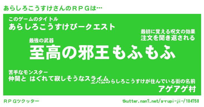 | 胡散臭い通販商品みたいなあだ名 | 『モテモテ間違いなし水晶球…その名も「あらしろこうすけ」』 |