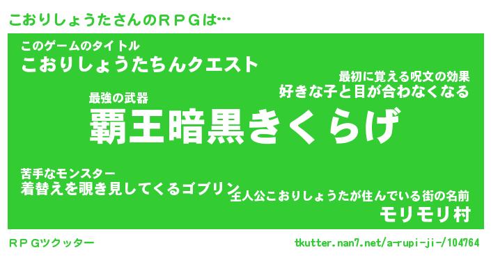 | 男性向けラノベタイトル風あだ名 | 『コオリショウタアートオンライン』 |