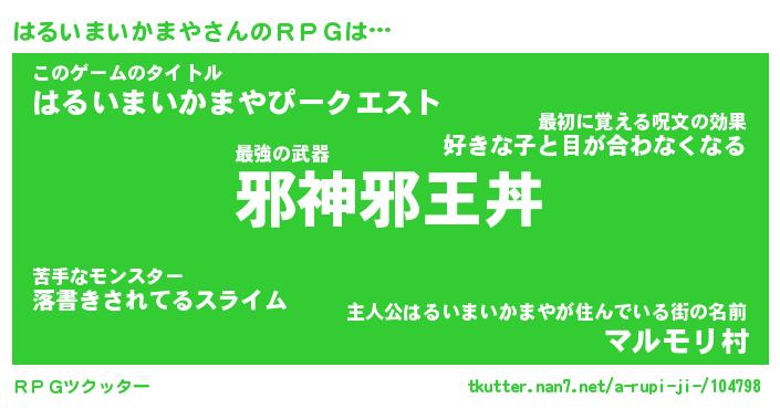 | 男性向けラノベタイトル風あだ名 | 『ハルイマイカマヤアートオンライン』 |