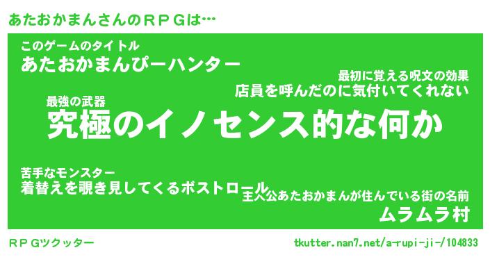 | ヒーロー風カッコイイあだ名 | 『スーパーアタオカマン』『幻影騎士アタ』 |