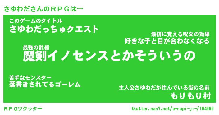 | 男性向けラノベタイトル風あだ名 | 『さゆわだの憂鬱』 |