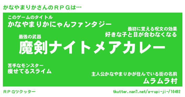 | ヒーロー風カッコイイあだ名 | 『スーパーカナヤマリカ』『幻影騎士カナ』 |
