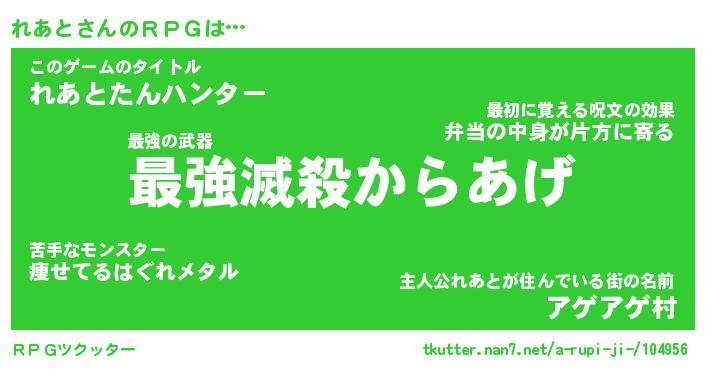 | ヒーロー風カッコイイあだ名 | 『スーパーレアト』『ウルトラれあとマン』 |