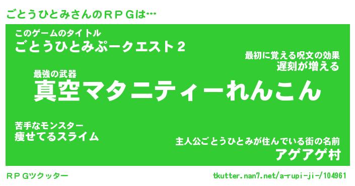 | 男性向けラノベタイトル風あだ名 | 『ゴトウヒトミアートオンライン』 |
