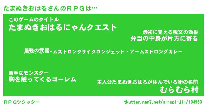 | 胡散臭い通販商品みたいなあだ名 | 『必ず成功するブレスレット…その名も「たまぬきおはる」』 |