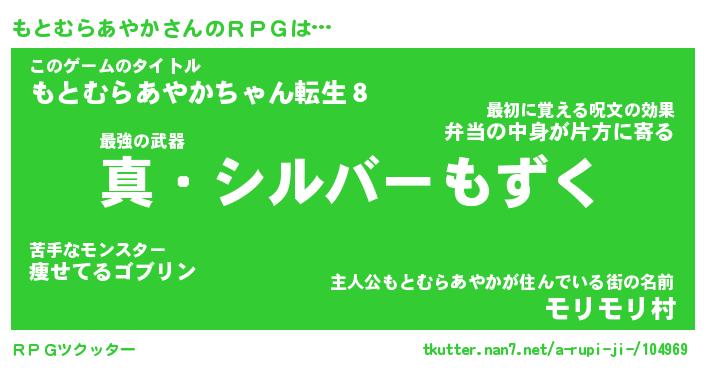 | 男性向けラノベタイトル風あだ名 | 『モトムラアヤカアートオンライン』 |