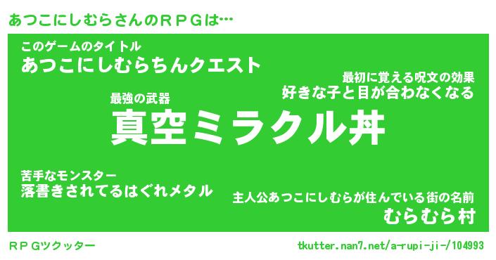 | 伝説のあだ名 | 『封印されし竜騎士あつこにしむら』 |