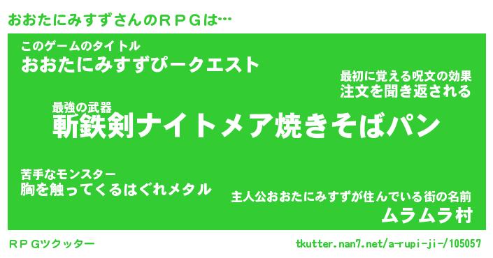 | 胡散臭い通販商品みたいなあだ名 | 『必ず成功する霊験あらたかなお札…その名も「おおたにみすず」』 |