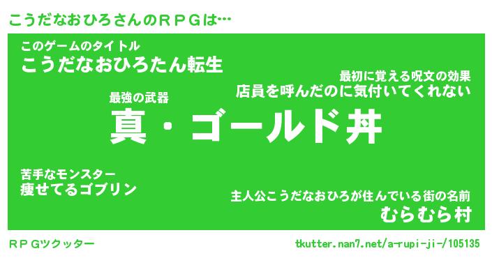 | 男性向けラノベタイトル風あだ名 | 『コウダナオヒロアートオンライン』 |