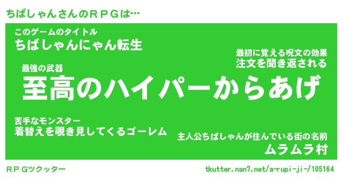 | 男性向けラノベタイトル風あだ名 | 『チバシャンアートオンライン』 |