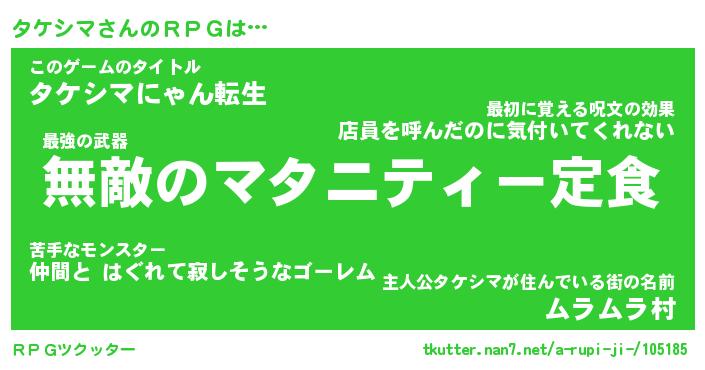 | 男性向けラノベタイトル風あだ名 | 『タケシマアートオンライン』 |