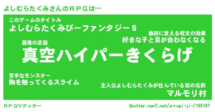 | 胡散臭い通販商品みたいなあだ名 | 『億万長者になれるブレスレット…その名も「よしむらたくみ」』 |