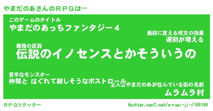 | 肩書あだ名 | 『やまだのあ御曹司』『やまだのあ団長』 |
