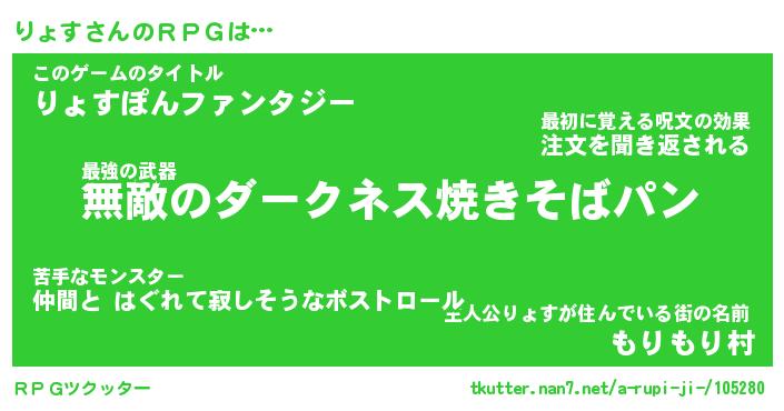 | ファンタジー風あだ名 | 『リョフェル』『エターナルリョスー』 |