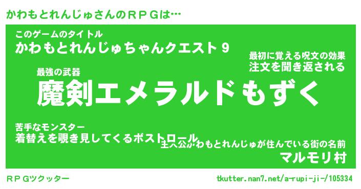 | 男性向けラノベタイトル風あだ名 | 『かわもとれんじゅの憂鬱』 |