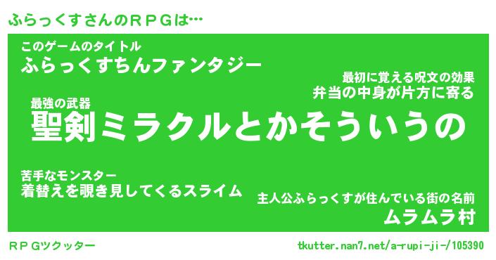 | ファンタジー風あだ名 | 『フラフェル』『エターナルフラックスー』 |