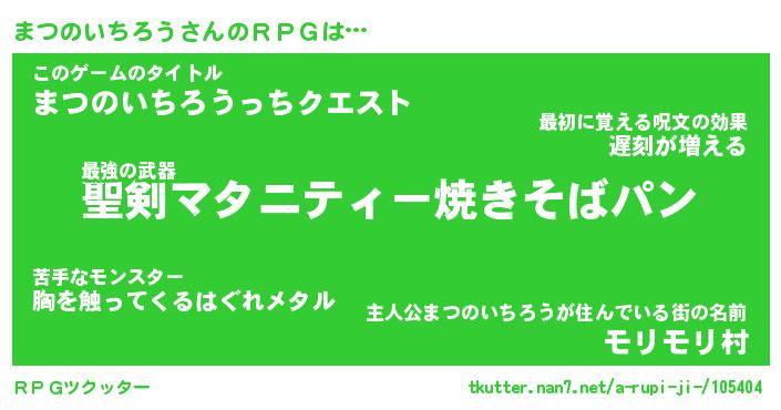 | 胡散臭い通販商品みたいなあだ名 | 『必ず成功する霊験あらたかなお札…その名も「まつのいちろう」』 |