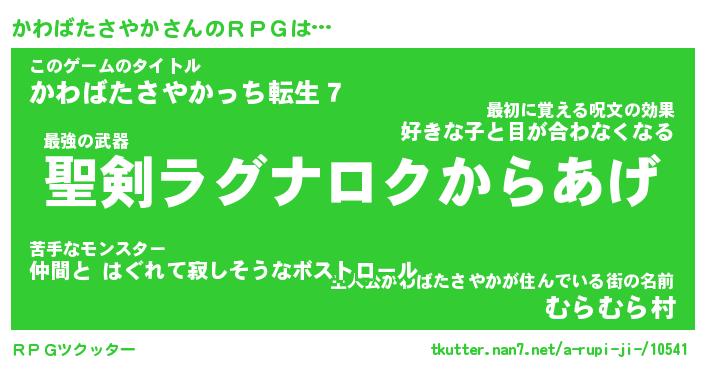 | 伝説のあだ名 | 『伝説の竜騎士かわばたさやか』 |