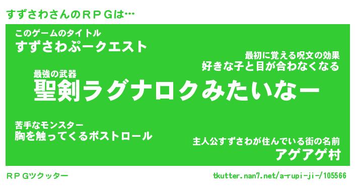 | ファンタジー風あだ名 | 『スズフェル』『エターナルスズサワー』 |