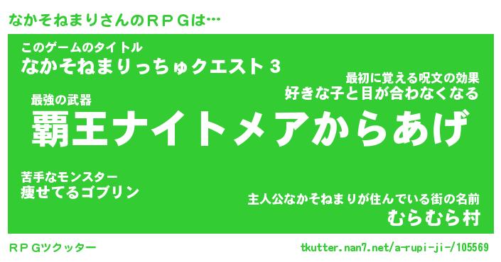 | 伝説のあだ名 | 『封印されしスナイパーなかそねまり』 |