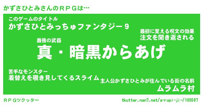 | 男性向けラノベタイトル風あだ名 | 『カズサヒトミアートオンライン』 |