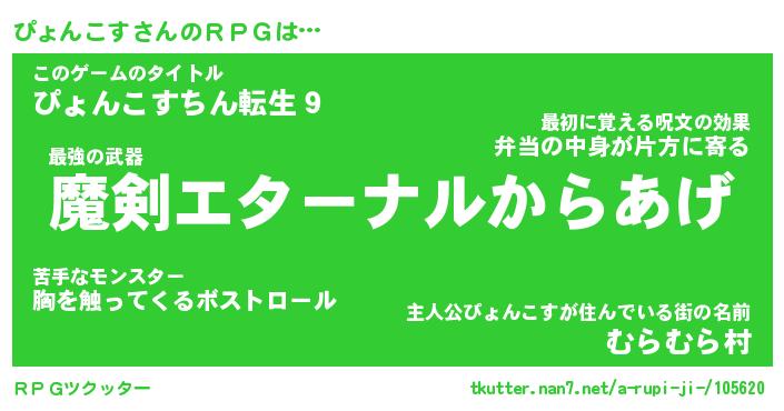 | 男性向けラノベタイトル風あだ名 | 『ぴょんこすの憂鬱』 |