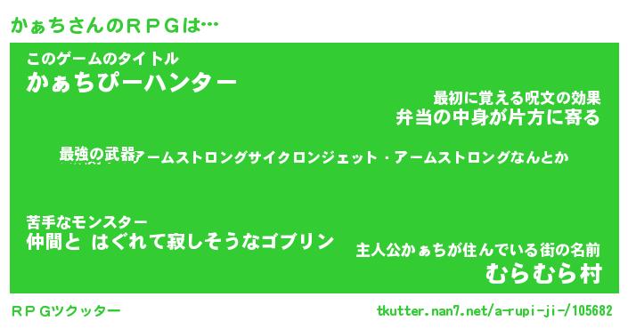 | 男性向けラノベタイトル風あだ名 | 『かぁちの憂鬱』 |