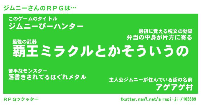 | ファンタジー風あだ名 | 『ジムフェル』『エターナルジムニーー』 |