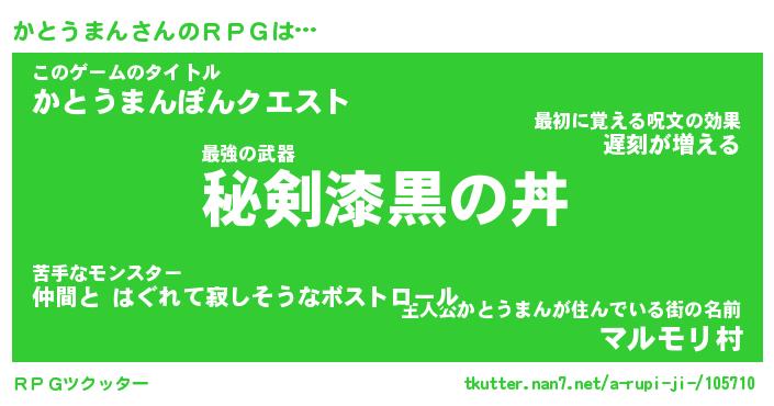 | 男性向けラノベタイトル風あだ名 | 『かとうまんの憂鬱』 |
