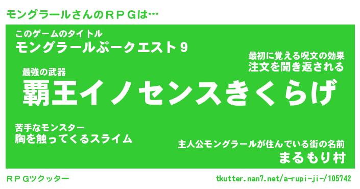 | 男性向けラノベタイトル風あだ名 | 『モングラールアートオンライン』 |